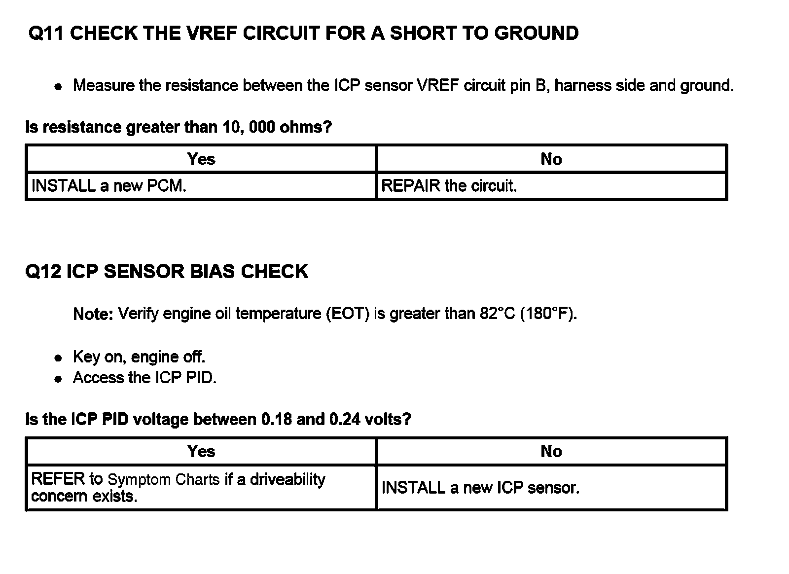 PINPOINT TEST Q: INJECTION CONTROL PRESSURE (ICP) SENSOR