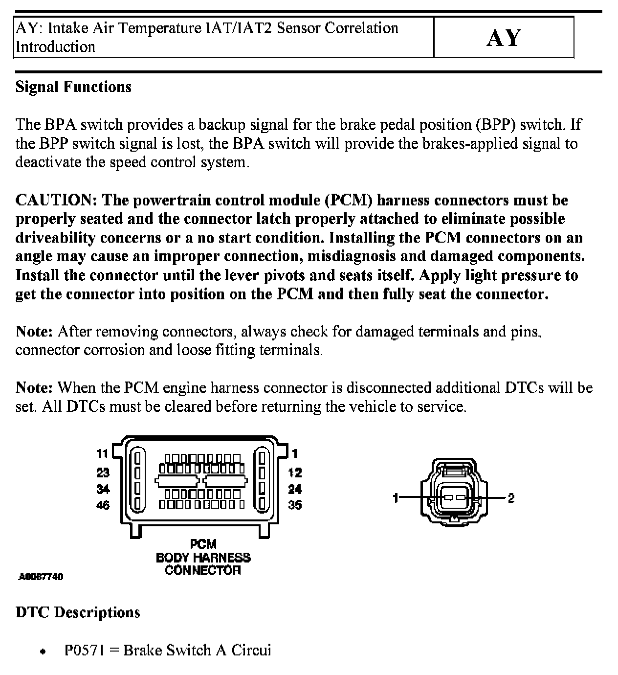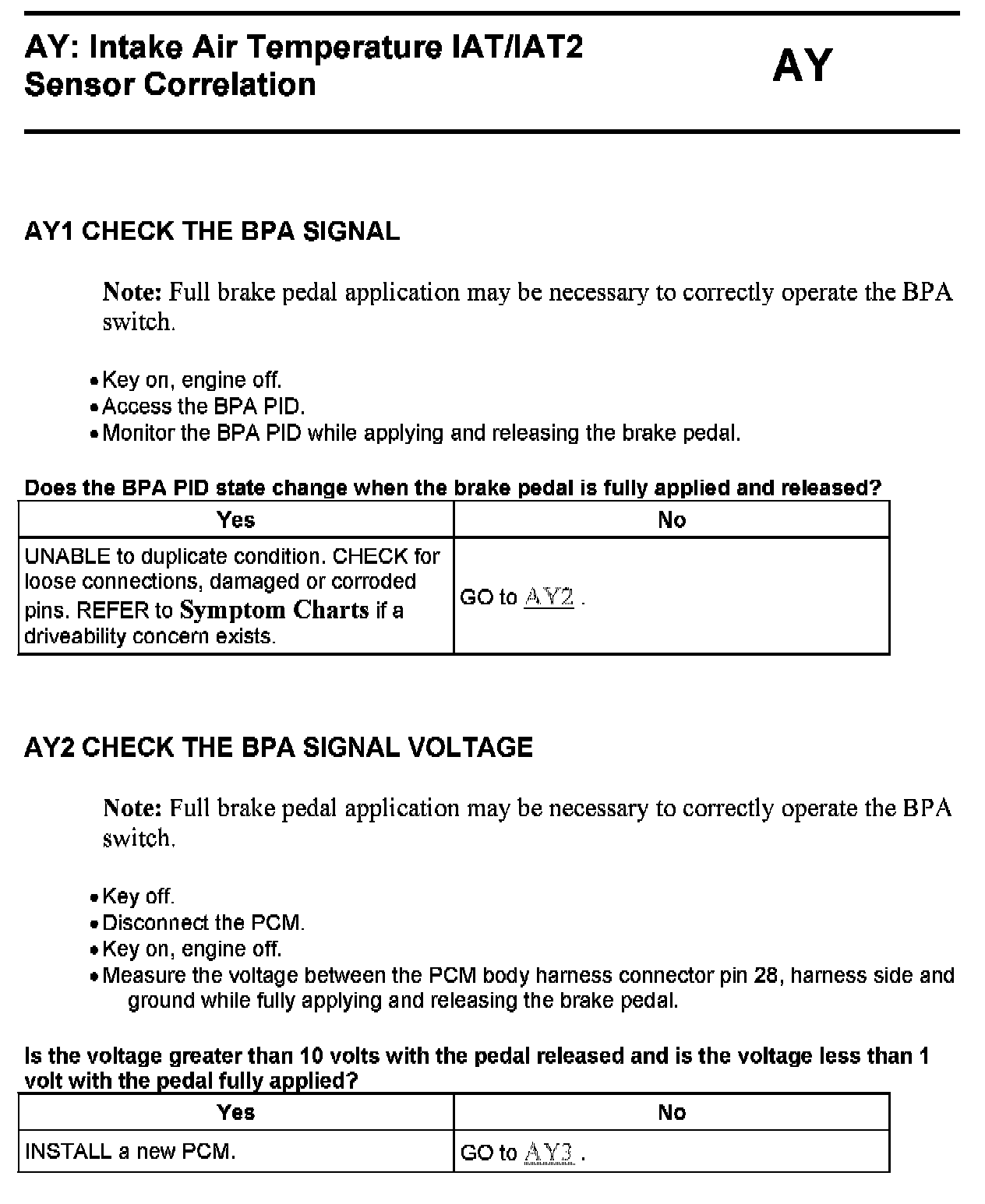 Pinpoint Test: AY Intake Air Temperature IAT/IAT2 Sensor Correlation