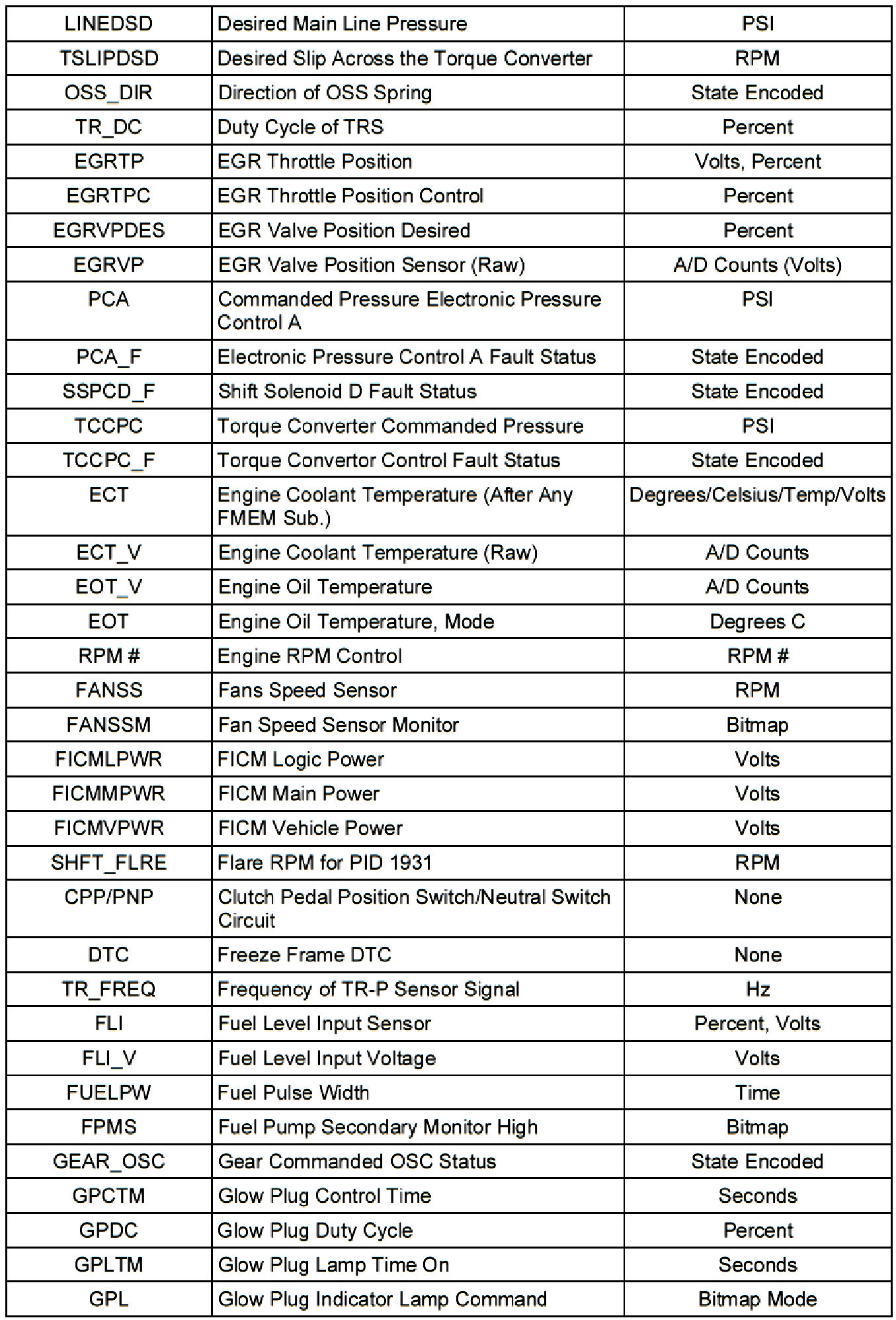 The Parameter Identification (PID) mode allows access to certain data values, analog and digital inputs and outputs, calculated values, and system status information. Throughout the manual, there will be references to PID values. PID Data Monitor and Record can be accessed from the scan tool through the Diagnostic Data Link menu.
