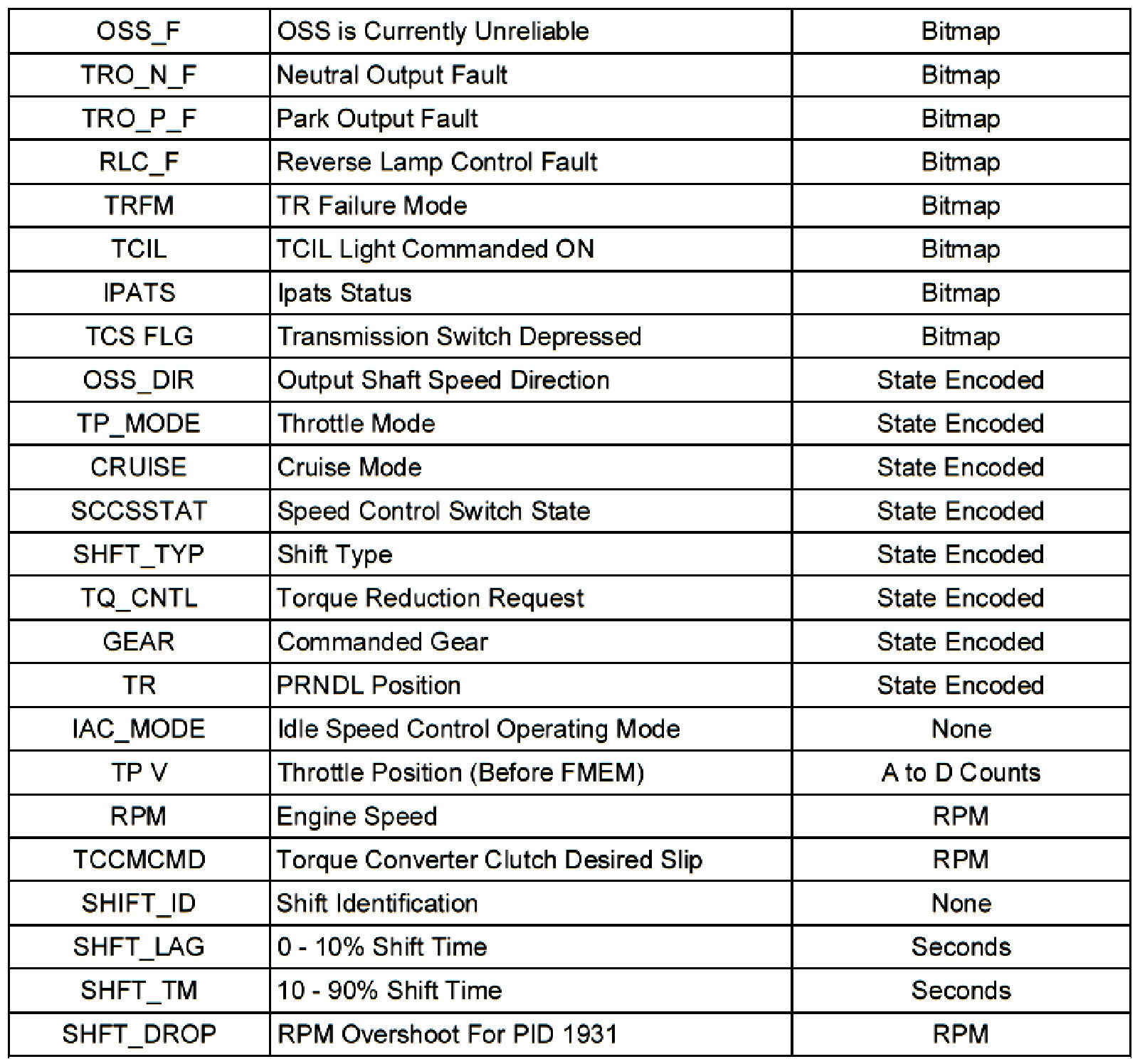 Parameter Identification (PID) List