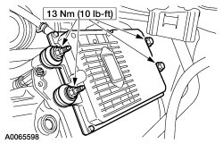 5. Remove the fuel injector control module (FICM) bolts.