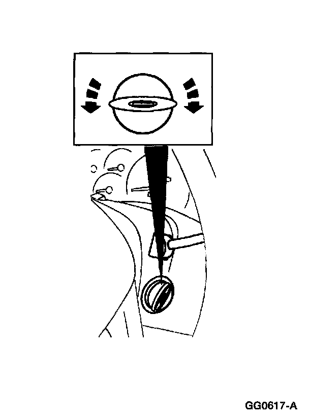 2 Using a 1/8-inch drift, press the ignition switch lock cylinder release pin through the access hole while pulling out the ignition switch lock cylinder.