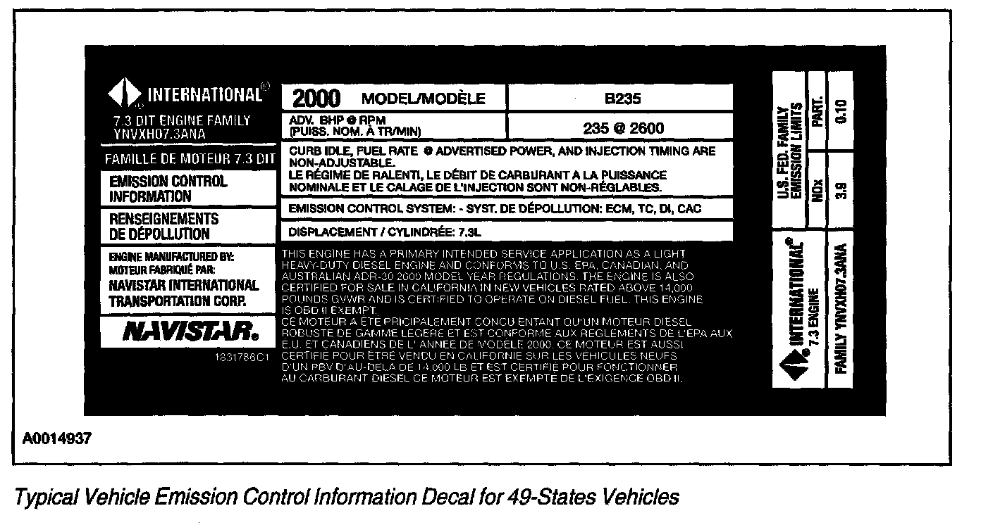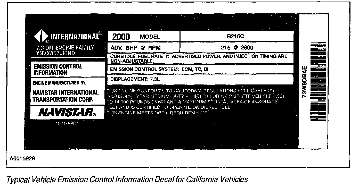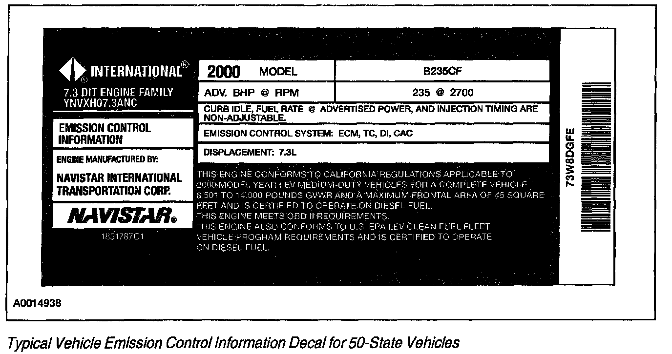 Each vehicle has a decal containing emission control information that applies specifically to the vehicle and engine.