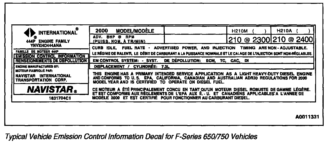 Typical Vehicle Emission Control Information Decal For F-Series 650/750 Vehicles: