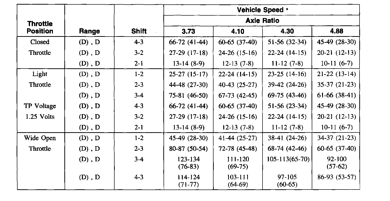 a Nominal shift speed at sea level is shown. Actual shift speed will depend on tire brand, size and axle ratio.