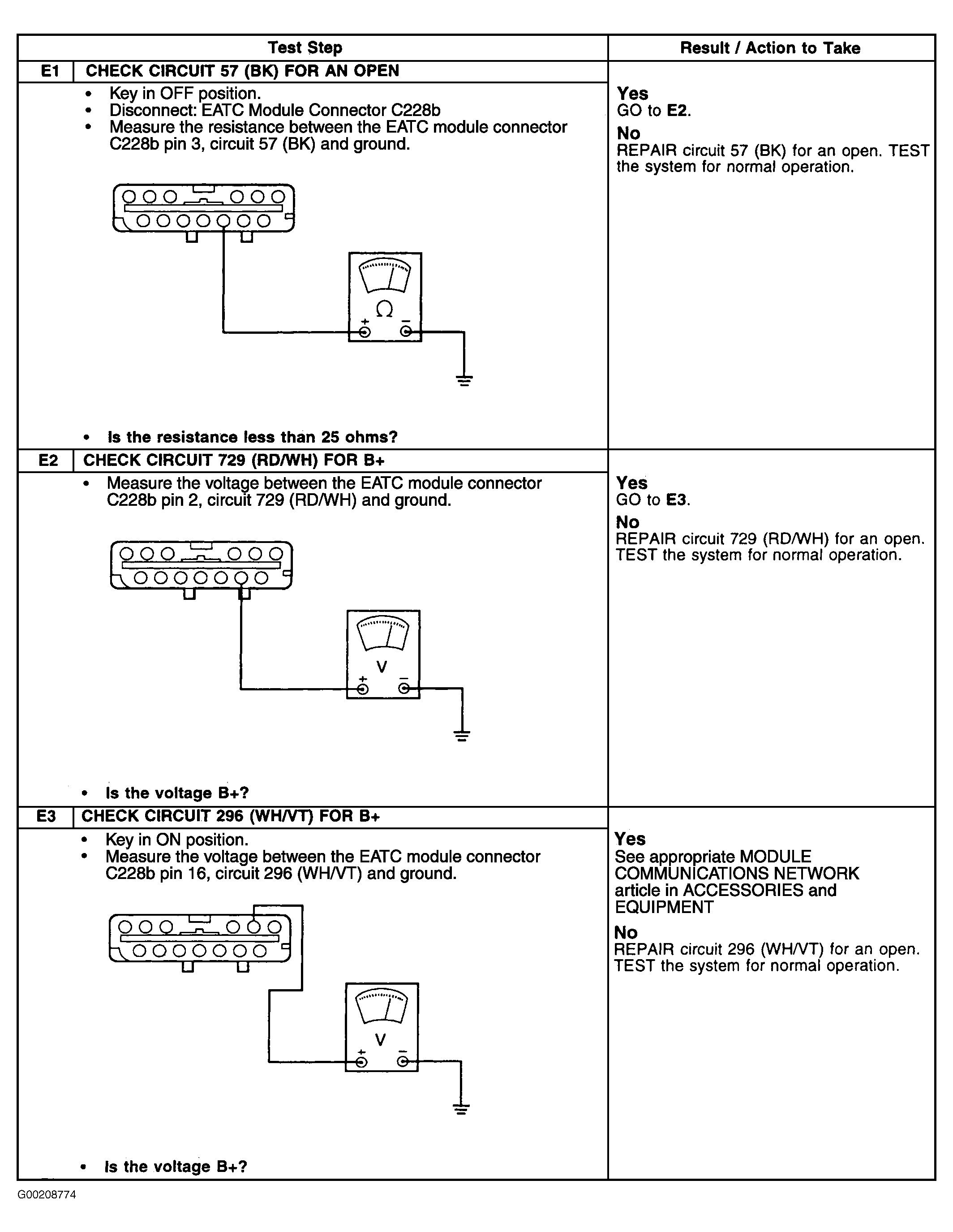 Home >> Ford >> 2003 >> Excursion 6.0 P, 4WD >> Repair and Diagnosis >> External Pages >> Different car >> Section 17 (Automatic A/C-Heater Systems) >> Symptom Tests >> Test E: No Communication With EATC Module >> Diagnostic Procedure