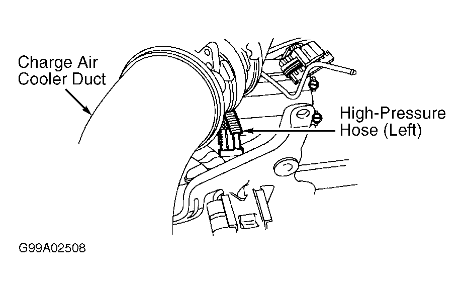- Reconnect high pressure hose to left cylinder head. Remove left valve cover. Crank engine, and inspect injector body and injector bore area for oil leakage. Repair as necessary.