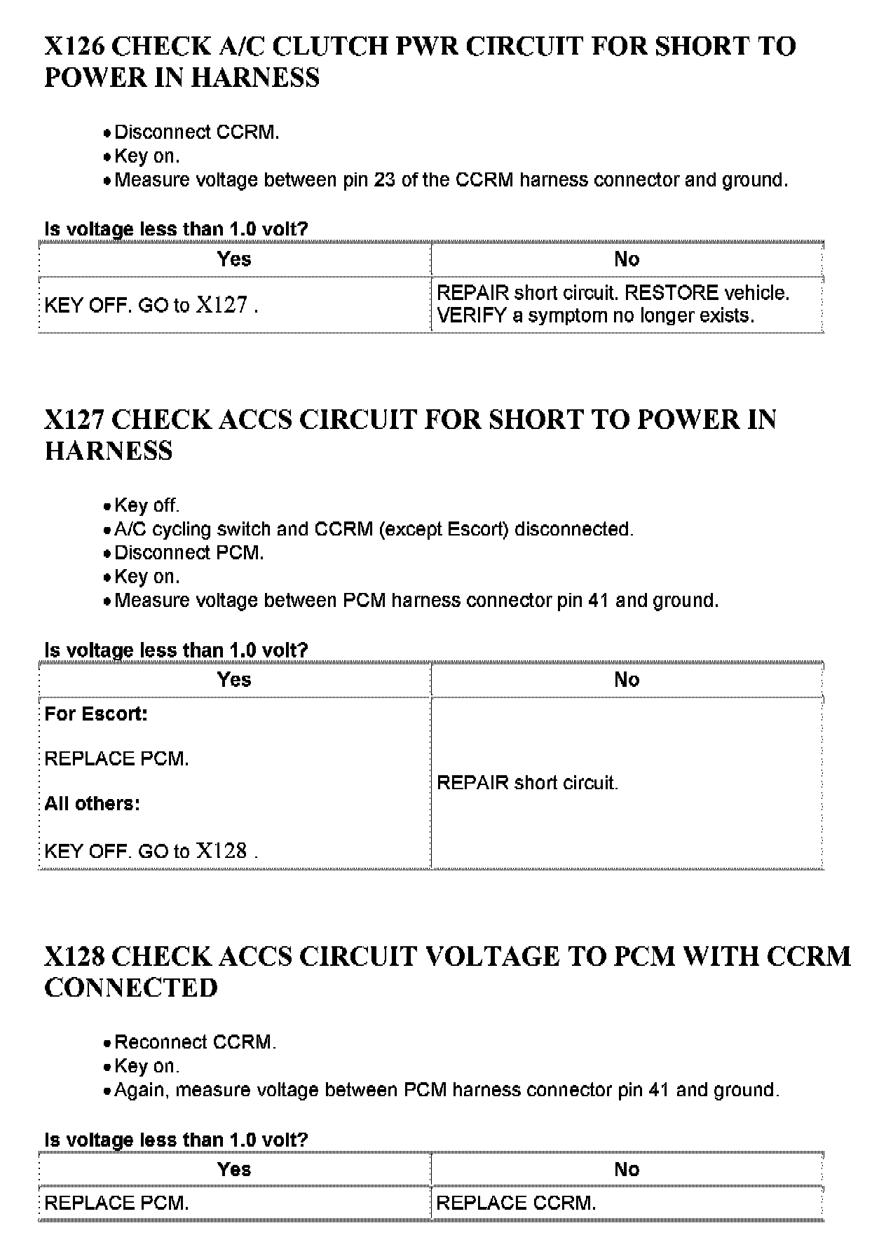 Home >> Ford >> 2003 >> Explorer 2WD V8-4.6L VIN W >> Repair and Diagnosis >> Powertrain Management >> Computers and Control Systems >> Testing and Inspection >> Pinpoint Tests >> Test X: Constant Control Relay Module (CCRM)