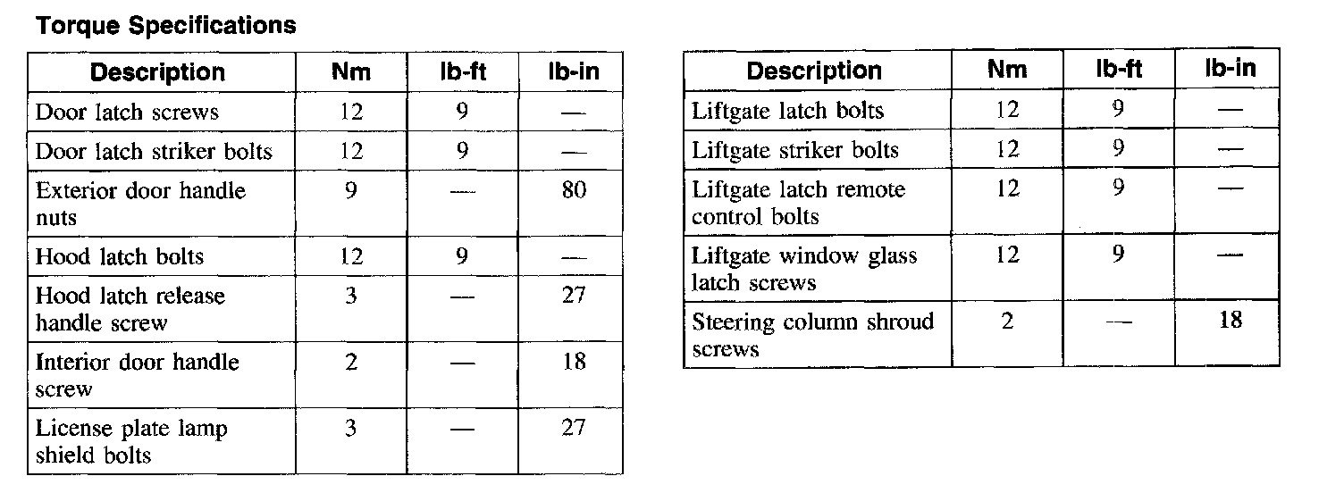 Torque Specifications: