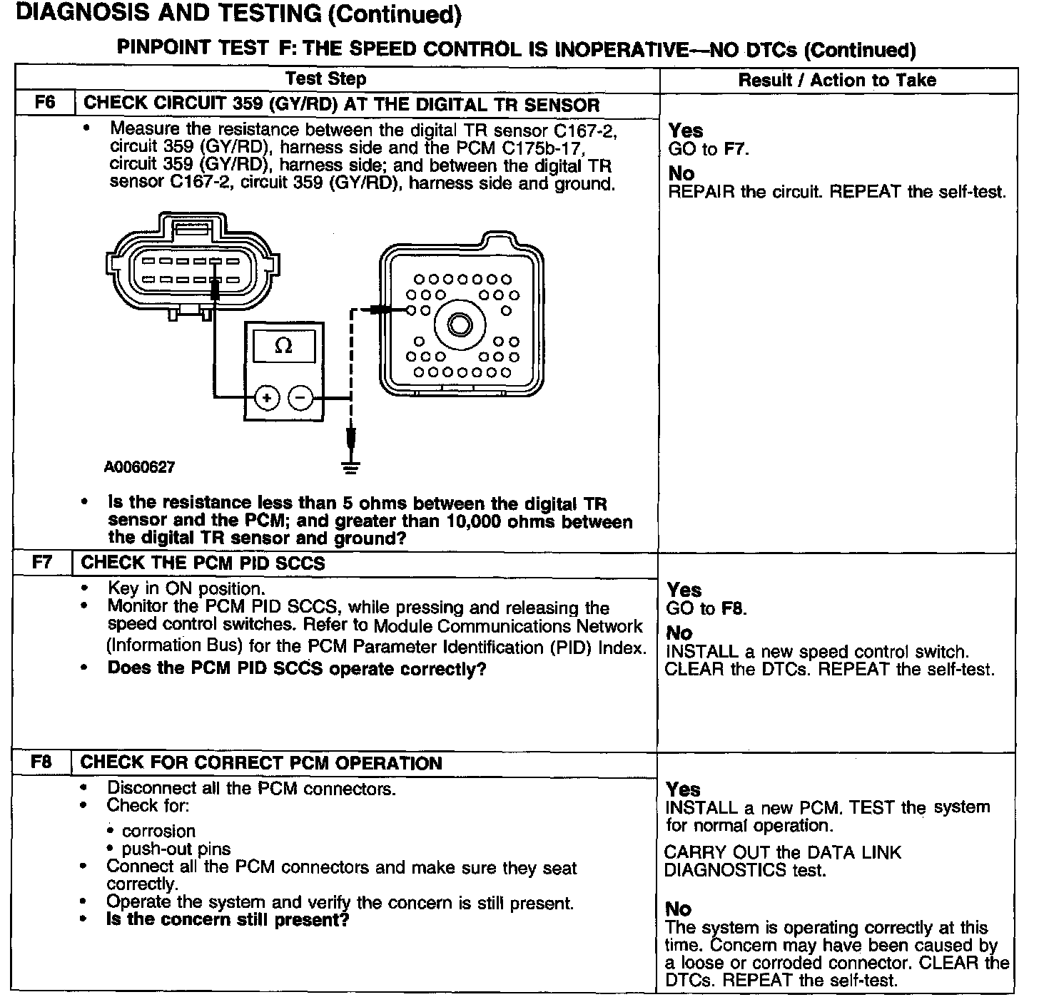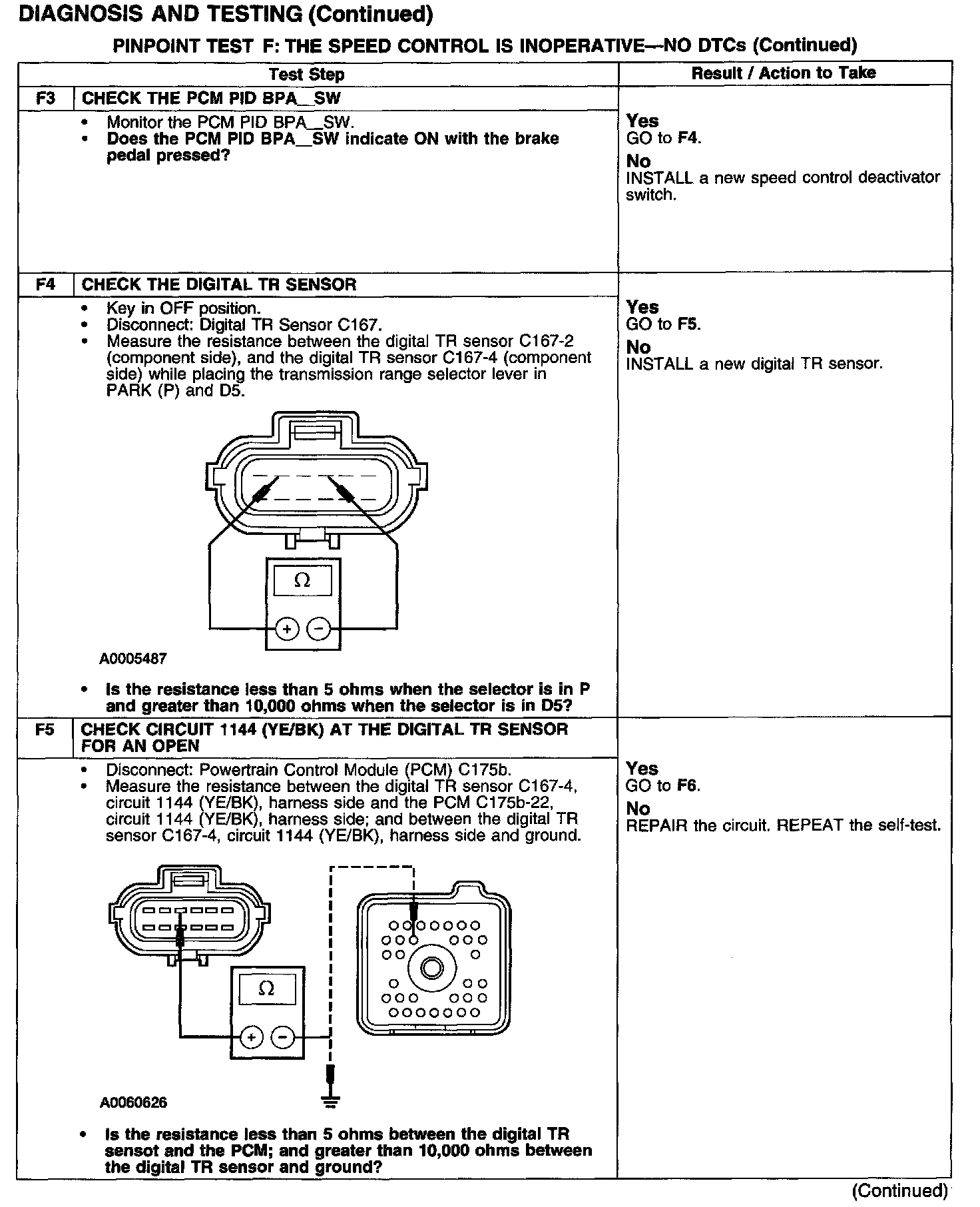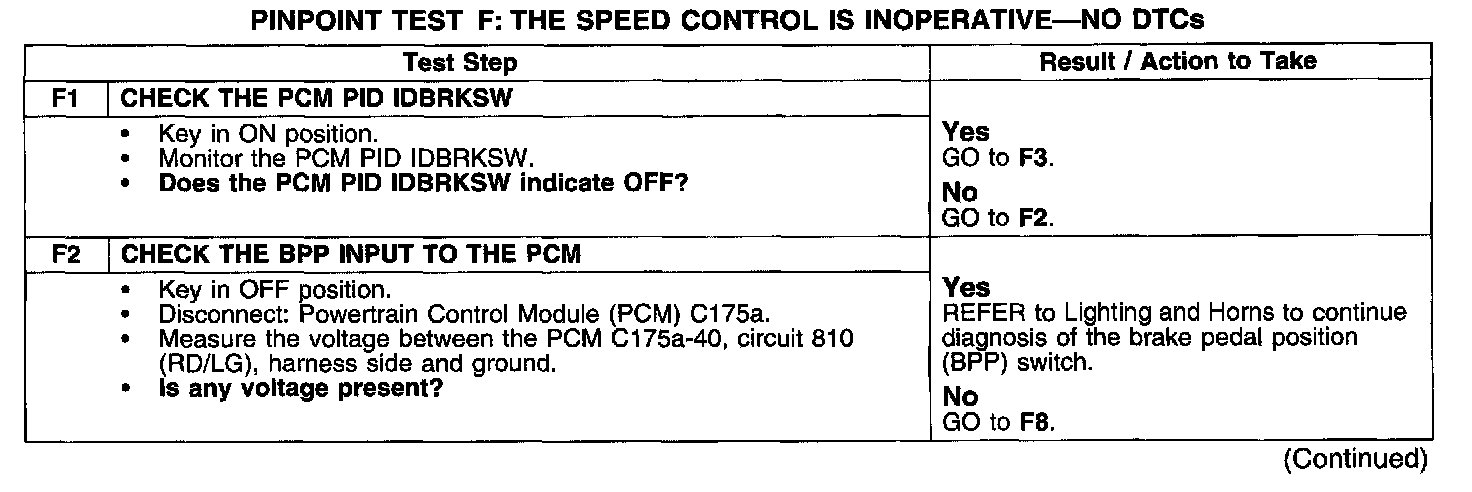 PINPOINT TEST F: THE SPEED CONTROL IS INOPERATIVE-NO DTCSTest F1-F2: