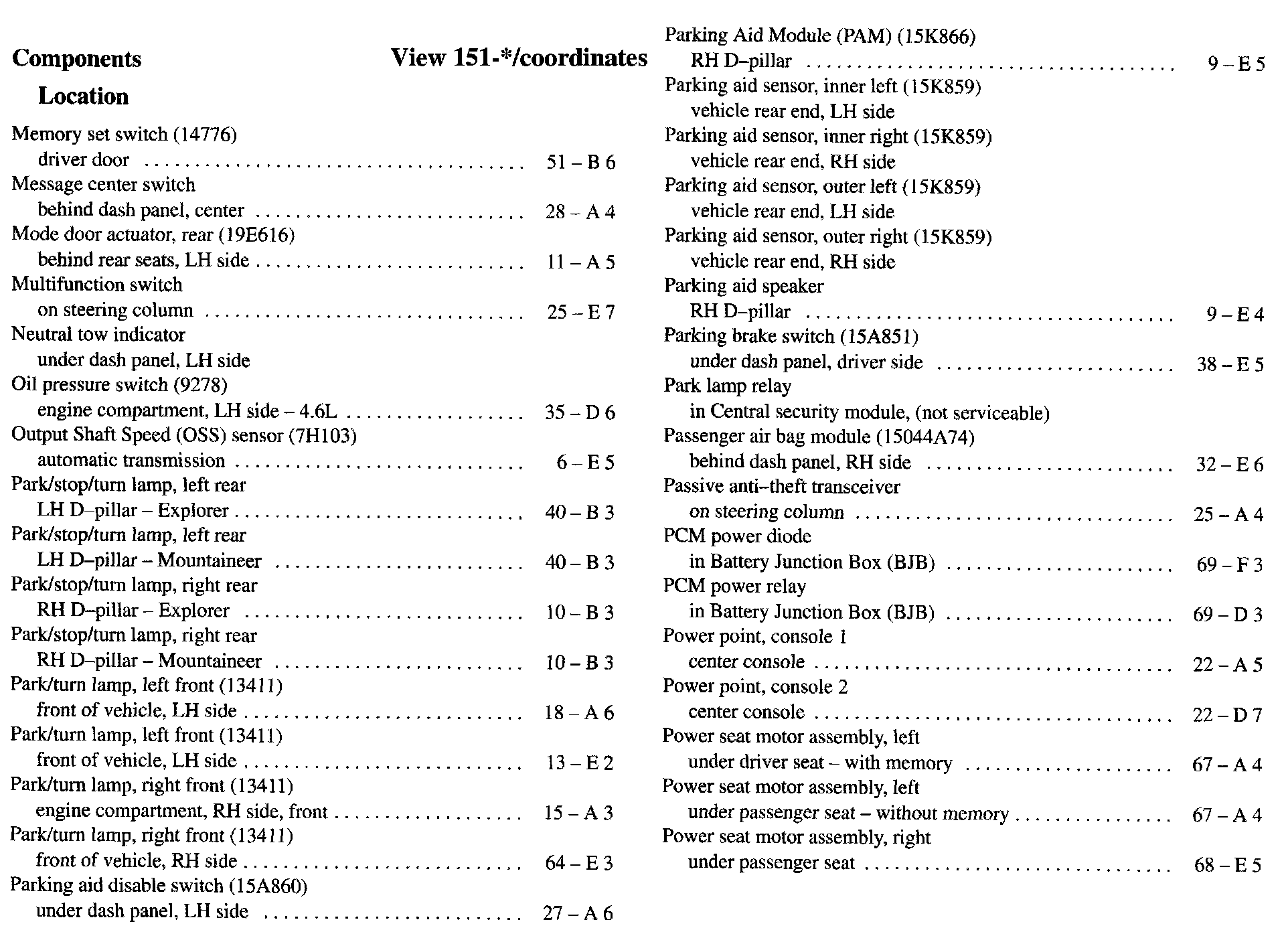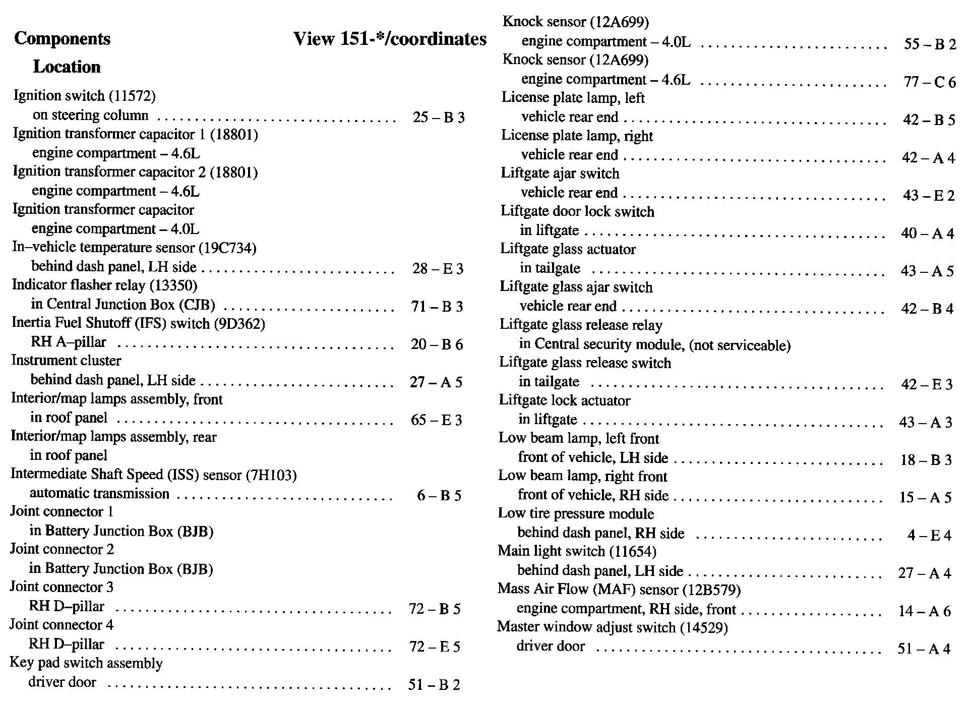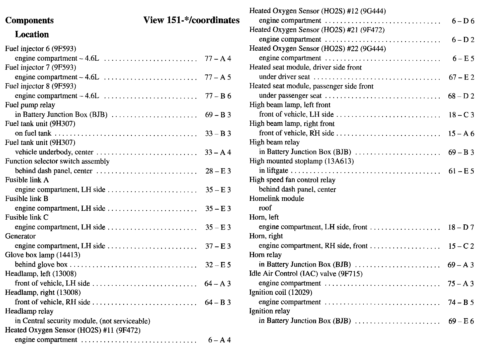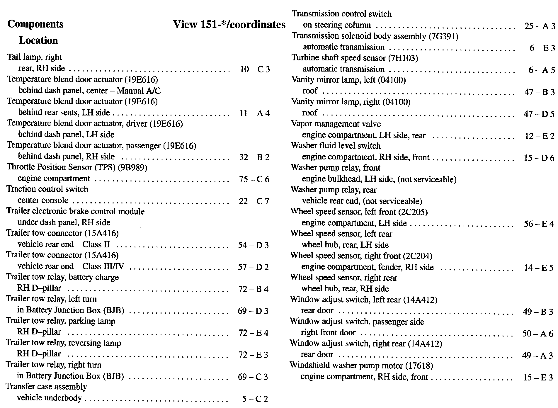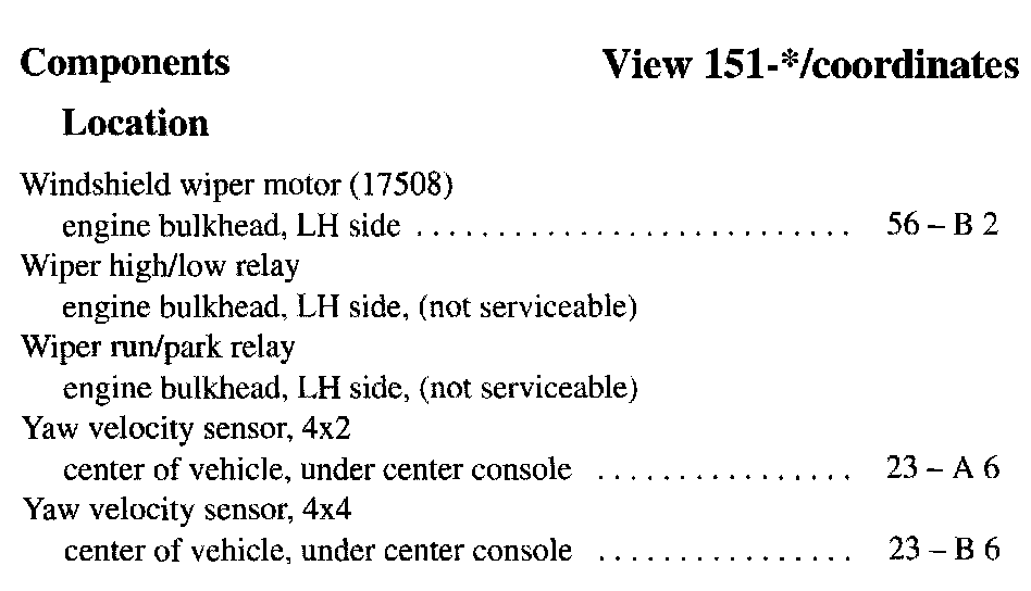 PLEASE NOTE: If a link on the Component Location Index to a view is not provided, that means that the Component and/or View in question does NOT apply to the vehicle model selected.