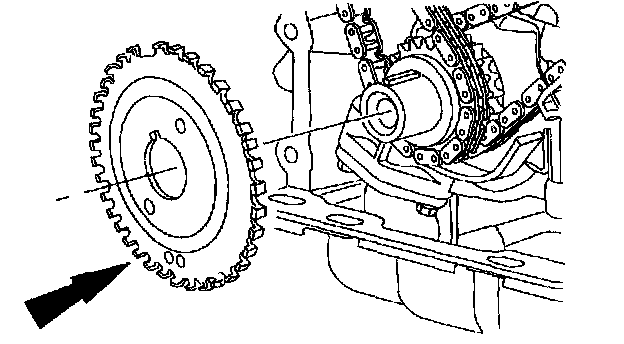 6. NOTE: If necessary. adjust the camshaft sprocket slightly to obtain timing mark alignment.