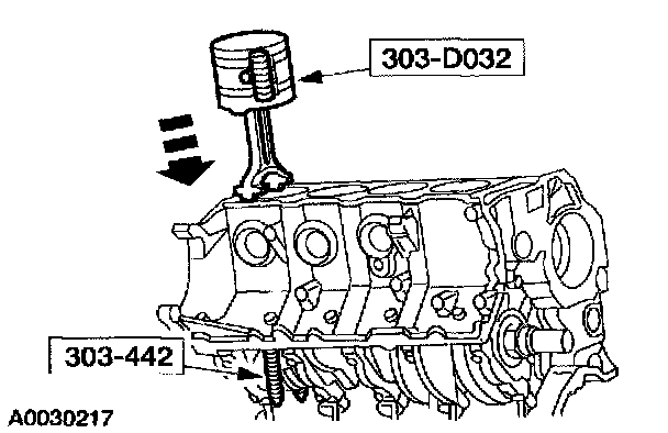 Using the special tools, install the connecting rod and piston with upper connecting rod bearing in place.
