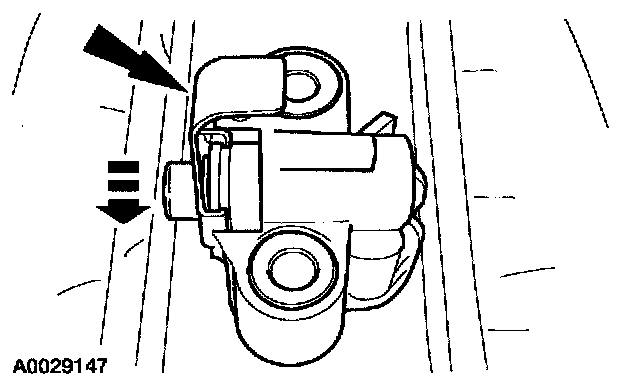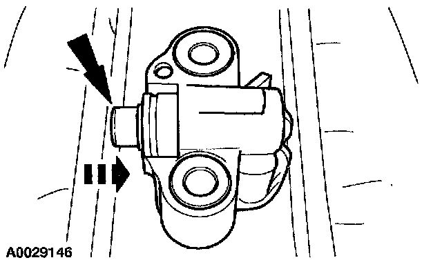 2. Install a retaining clip on the tensioner to hold the plunger in during installation.