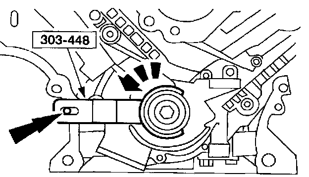 2. CAUTION: Rotate the crankshaft counterclockwise only. Do not rotate past the position shown or severe piston and/or valve damage will occur.