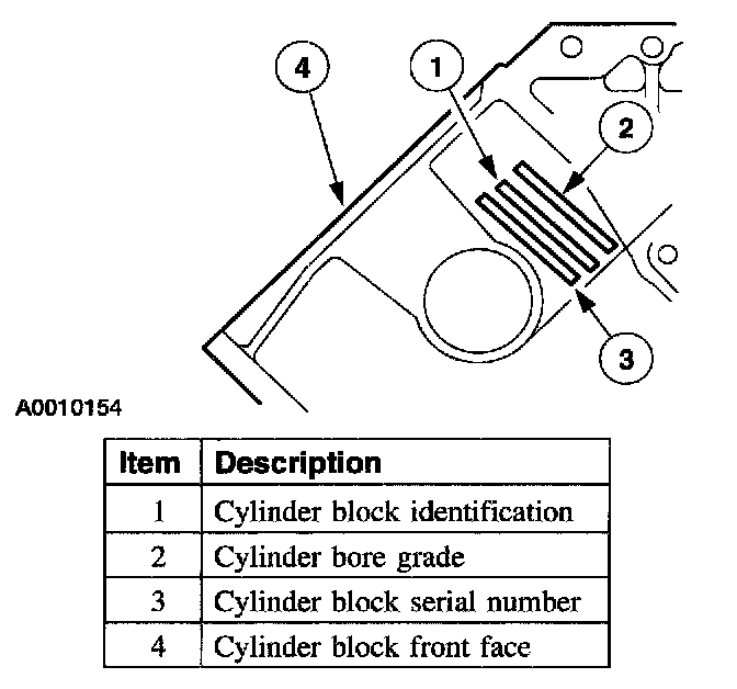 1. Read the first character code information on the cylinder block face (1) and record the information.