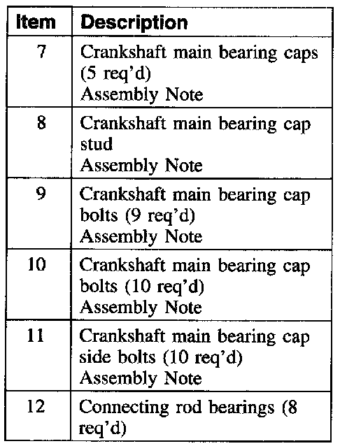 Items 7 - 10: Crankshaft Main Bearing Cap Assembly Note