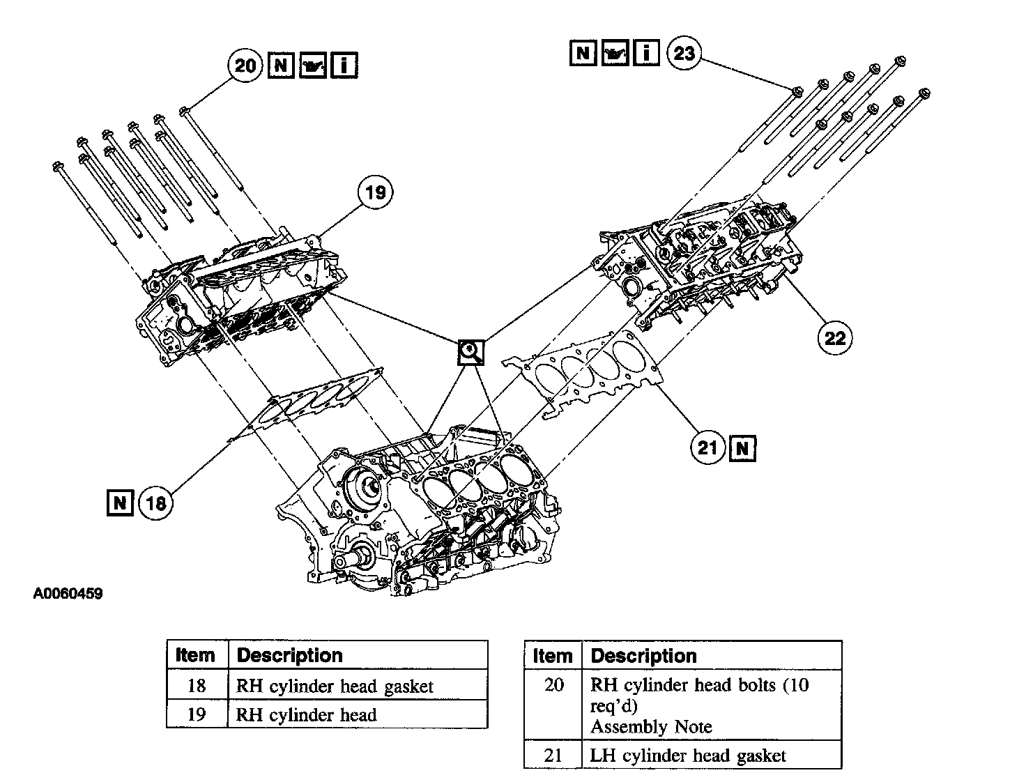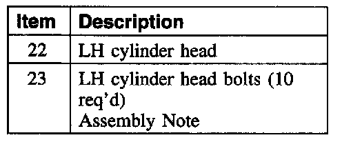 Items 20 and 23: RH and LH Cylinder Head Bolts Assembly Note