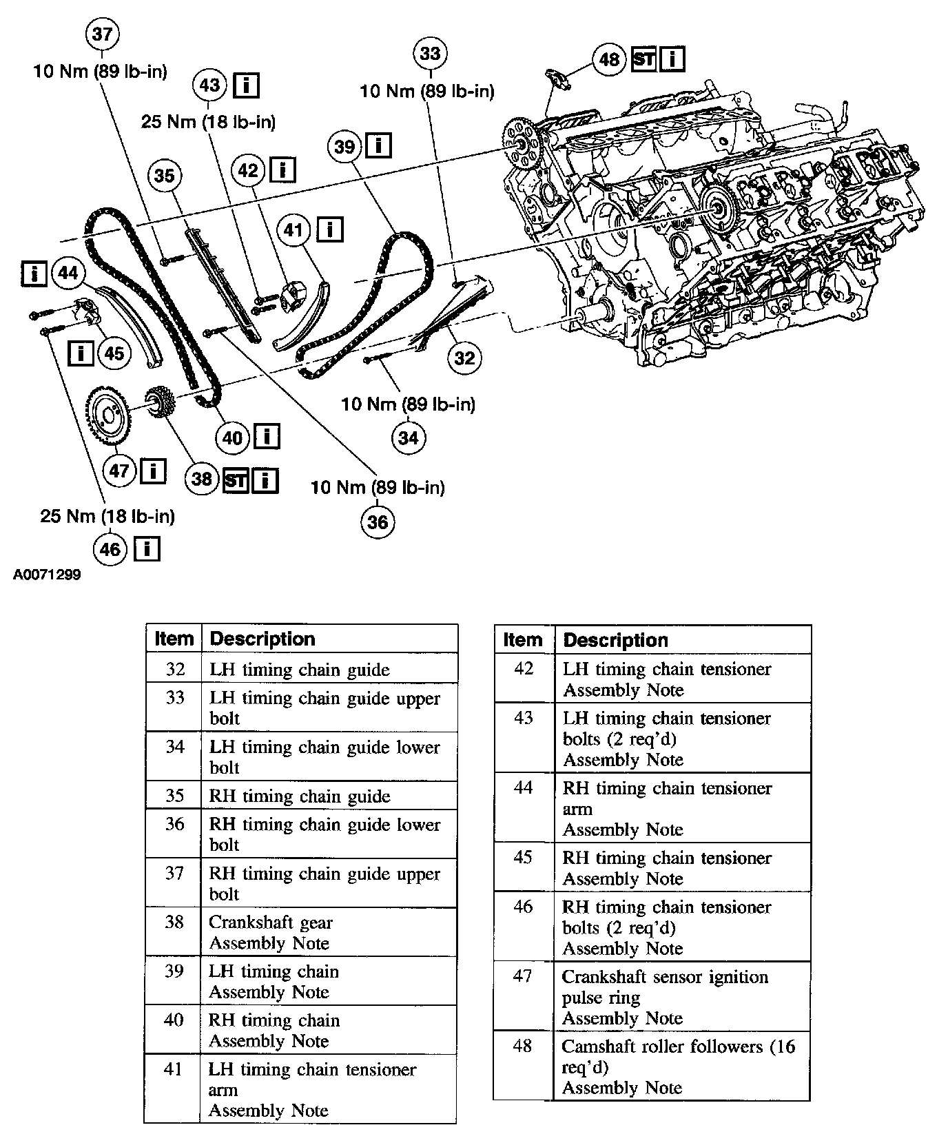 Items 42 and 45: Timing Chain Tensioner Assembly Note
