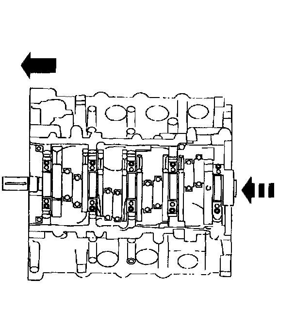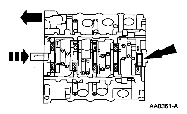 2. Push the crankshaft forward to seat the crankshaft thrust washer and hold the crankshaft in the forward position.