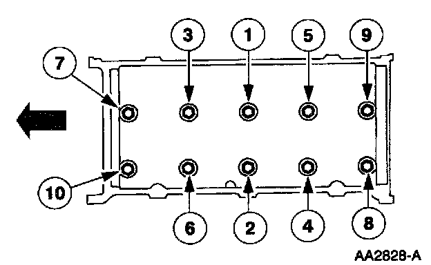 Tighten the cylinder head bolts in six stages in the sequence shown: