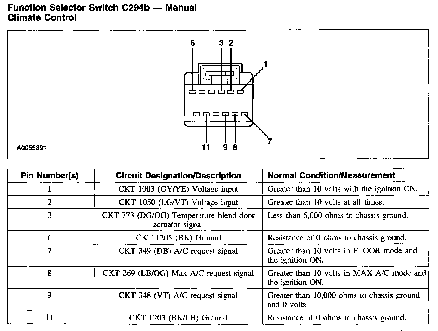 Function Selector Switch C294b - Manual Climate Control: