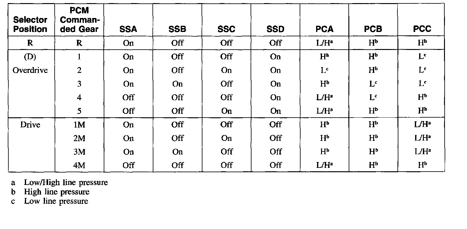 Solenoid Operation Chart