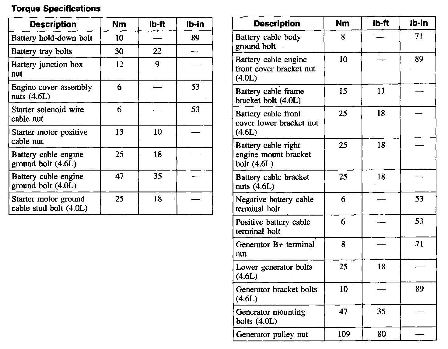 Torque Specifications: