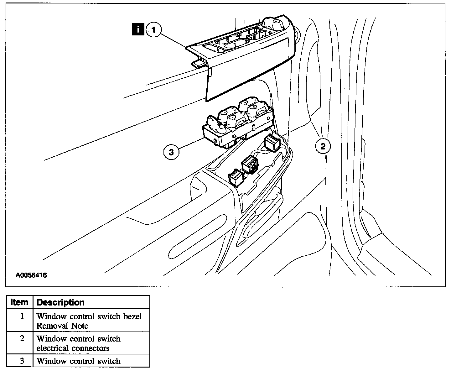 1. Lift the front of the window control switch bezel upward to release the front hold-down clip.