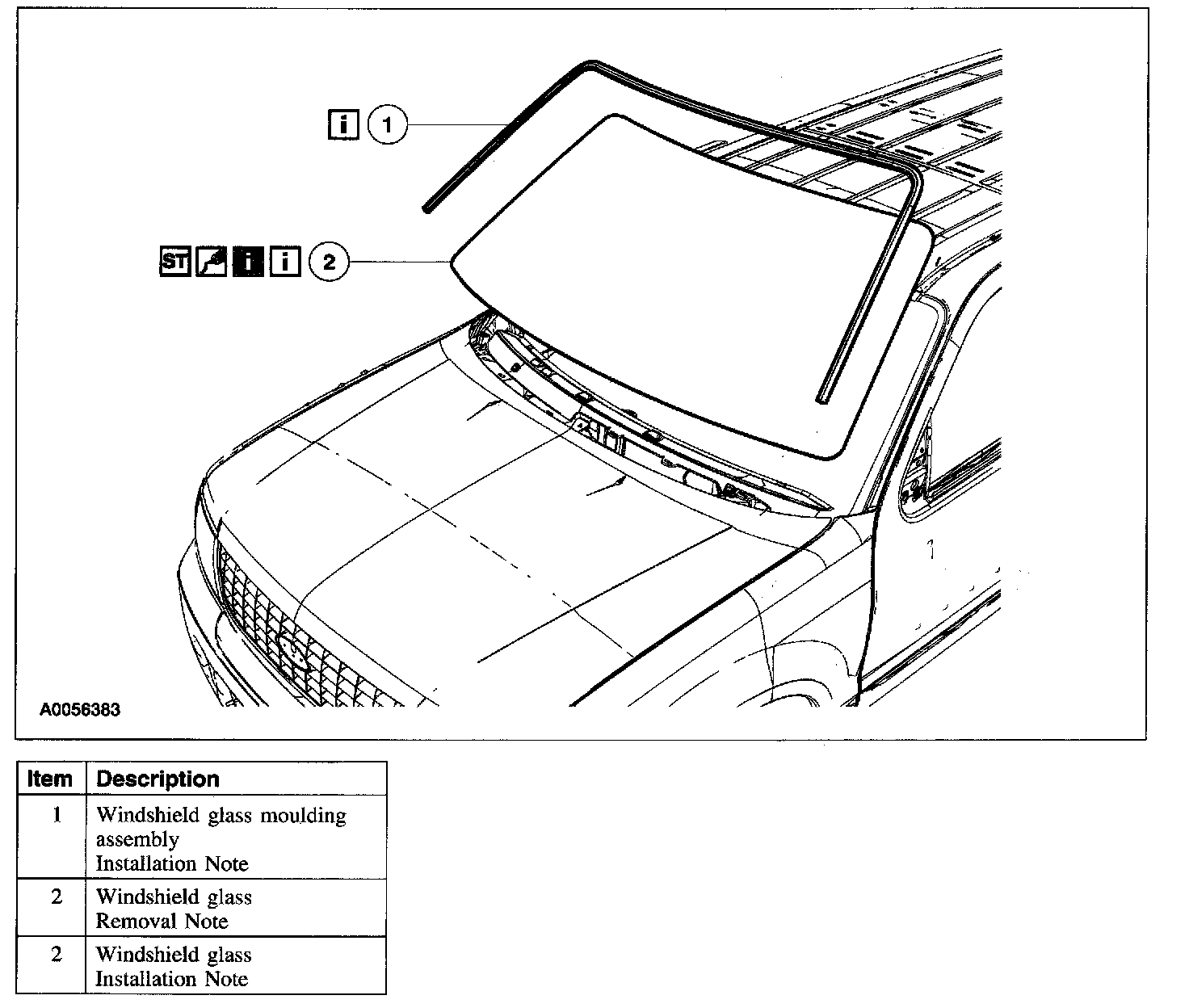 Item 1: Windshield Glass Moulding Assembly Installation Note