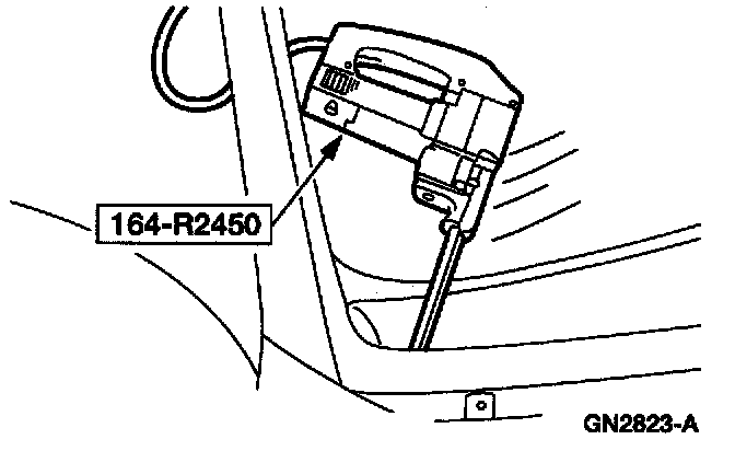 3. Use the wool applicator to apply adhesive meeting Ford specification WSB-M2G234-C to any exposed metal on the pinch weld. Allow six to ten minutes to dry.