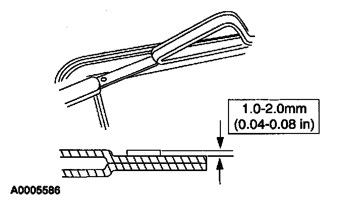 2. Trim the remaining urethane adhesive on the pinch weld to within specification. The surface should be smooth and free of cuts and contamination.