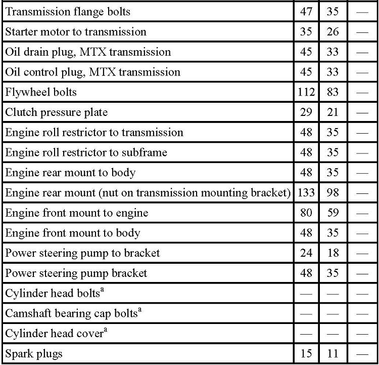 Torque Specifications