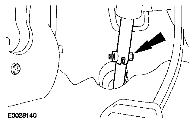 9. Remove the engine support insulator to transaxle center retaining bolt.