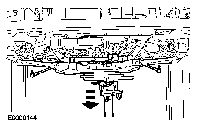 Using a suitable transmission jack and the special tool, position and align the crossmember.