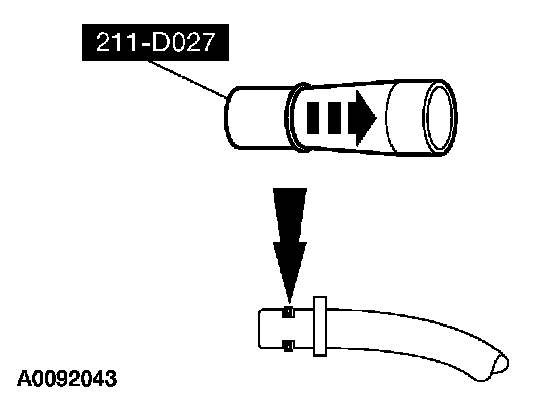 5. Using the special tool, install new O-ring seals (high pressure hose pin, 3F886-AA, return hose pin 3F886-BA) onto the power steering lines.