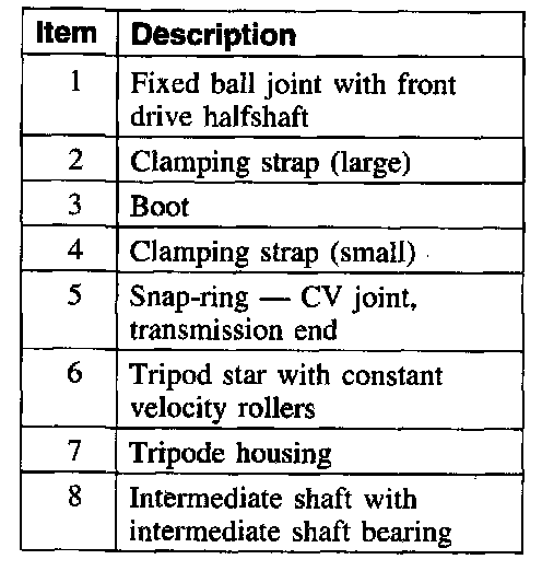 Exploded view of the front drive halfshaft