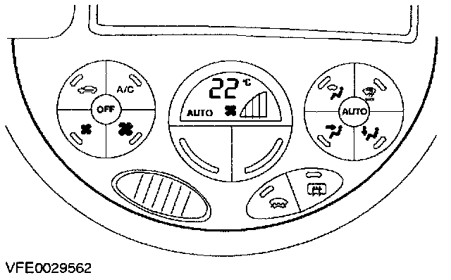 Vehicles with EATC have an operating panel which has several switches. Two switches for setting the interior temperature, two switches for the blower control, four switches for controlling the air flow and one ON/OFF switch each for the A/C and recirculated air mode. Furthermore, the ON and OFF switch for the EATC and the operating switches for the heated windshield and heated rear window are all located on the EATC control panel. The EATC control module is integral with the control panel. In contrast to the manual A/C system, the EATC has a self-diagnosis facility.