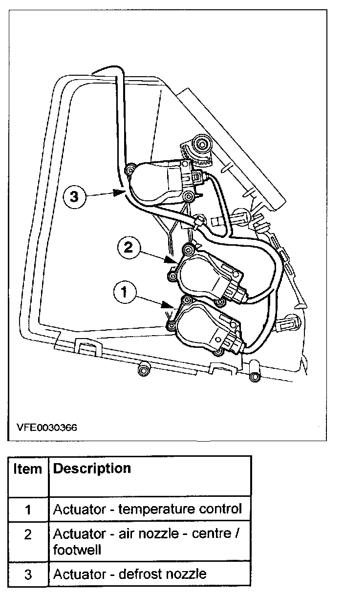 The flaps for air distribution and temperature control are controlled by the EATC control module and are operated by actuators (stepper motors).
