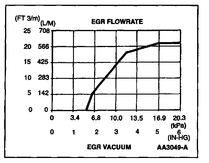 Since EGR flow requirement varies greatly, providing service specifications on flow rate is impractical. The on-board diagnostic system monitors the EGR valve function and triggers a Diagnostic Trouble Code if the test criteria is not met. The EGR valve flow rate is not measured directly as part of the field diagnostic procedures.