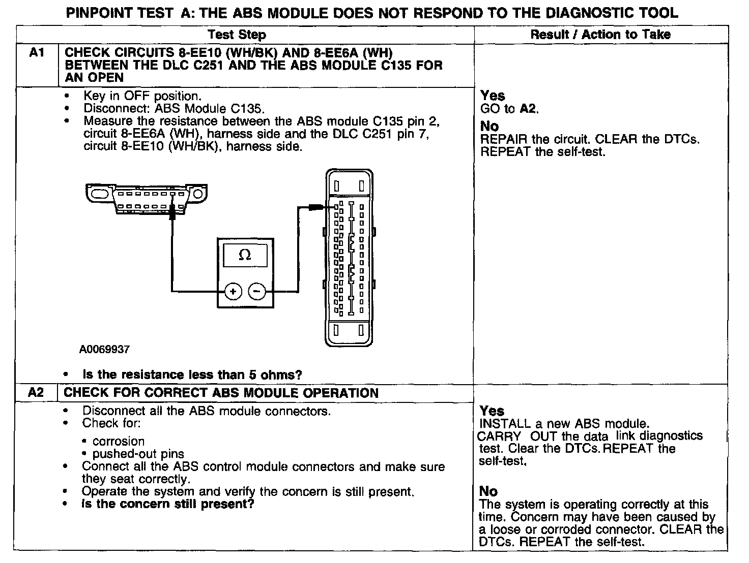 PINPOINT TEST A: THE ABS MODULE DOES NOT RESPOND TO THE DIAGNOSTIC TOOL