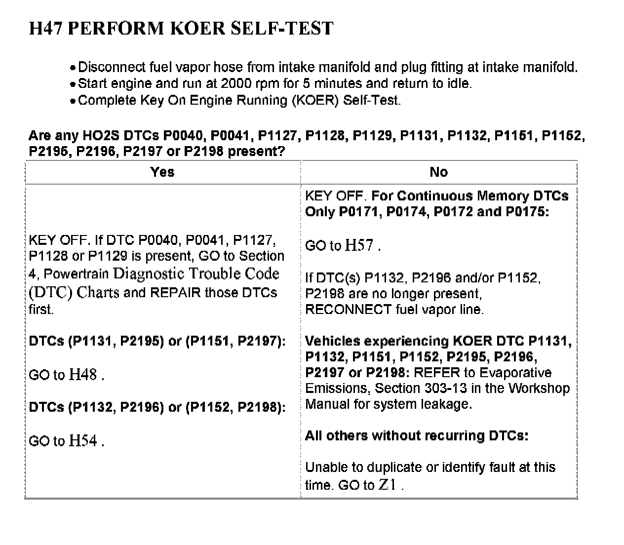 Home >> Ford >> 2003 >> Focus L4-2.3L VIN Z >> Repair and Diagnosis >> Powertrain Management >> Computers and Control Systems >> Testing and Inspection >> Pinpoint Tests >> Test H: Fuel Control