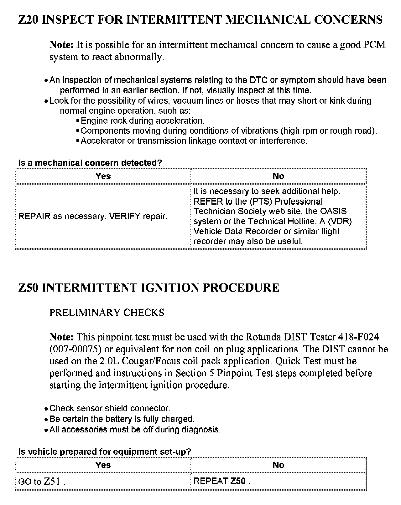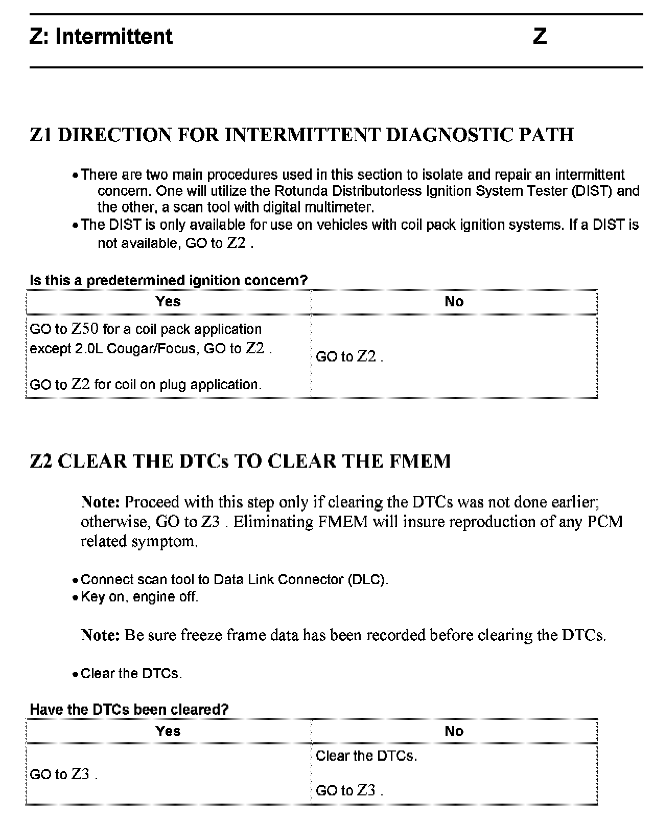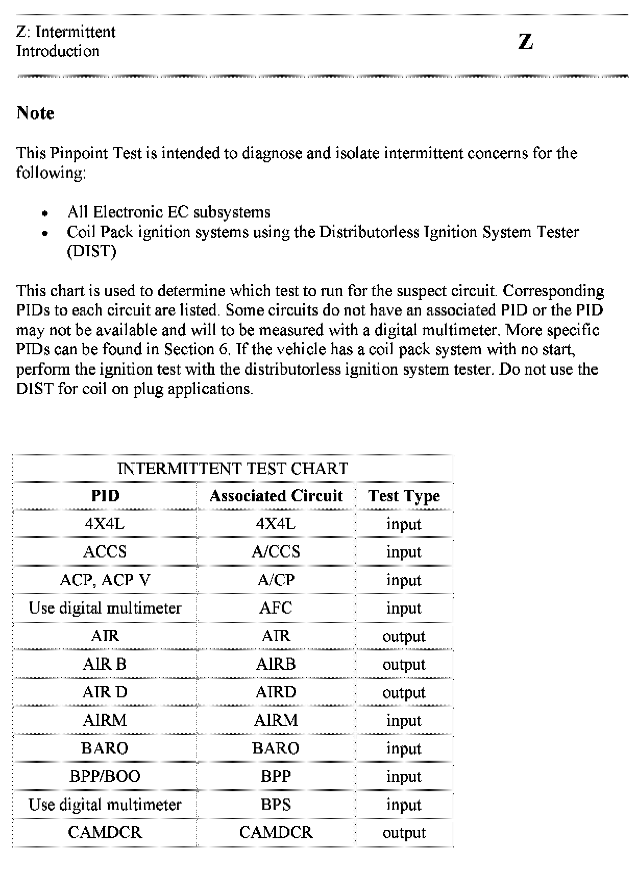 Home >> Ford >> 2003 >> Focus L4-2.3L VIN Z >> Repair and Diagnosis >> Powertrain Management >> Computers and Control Systems >> Testing and Inspection >> Pinpoint Tests >> Test Z: Intermittent