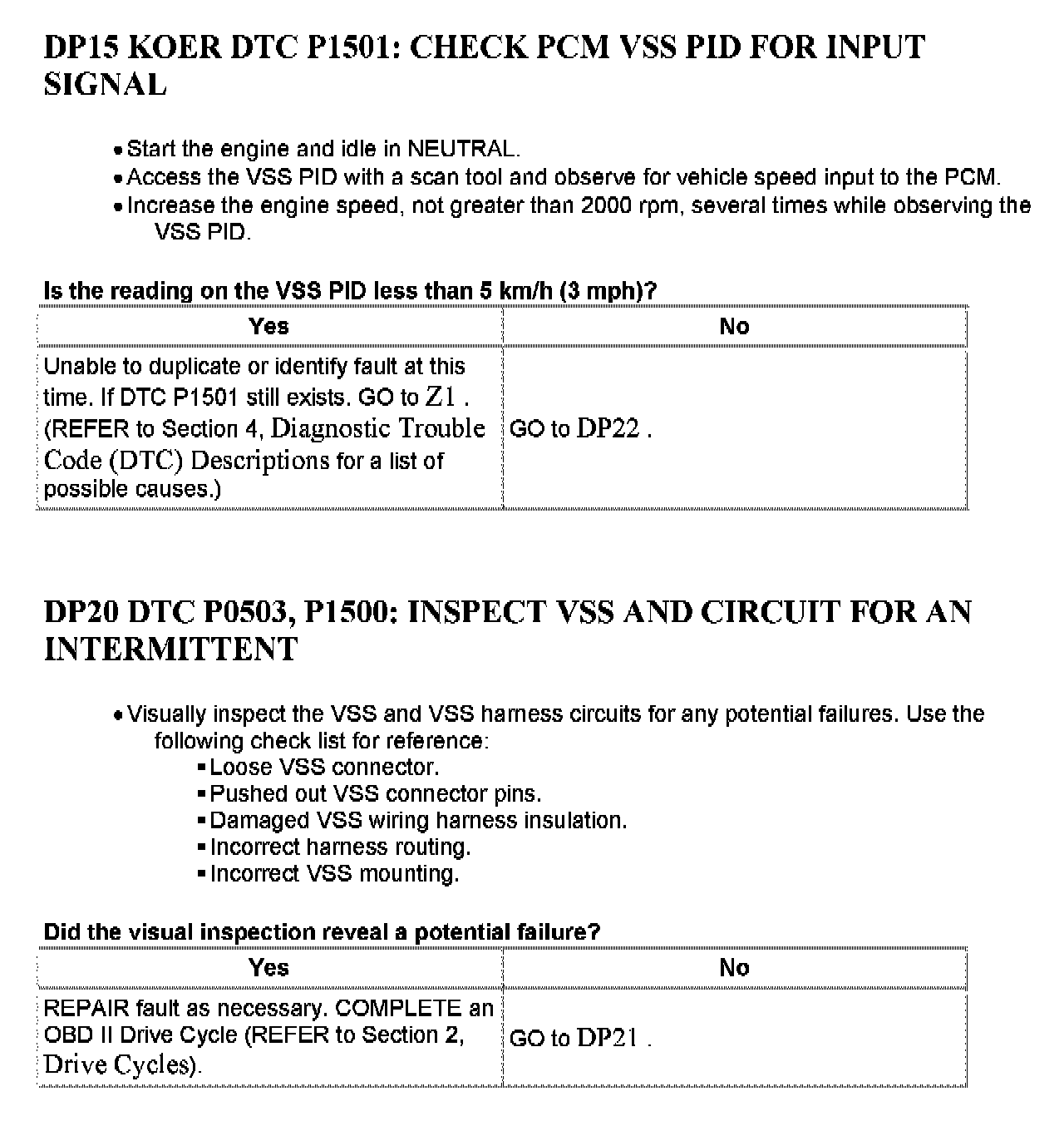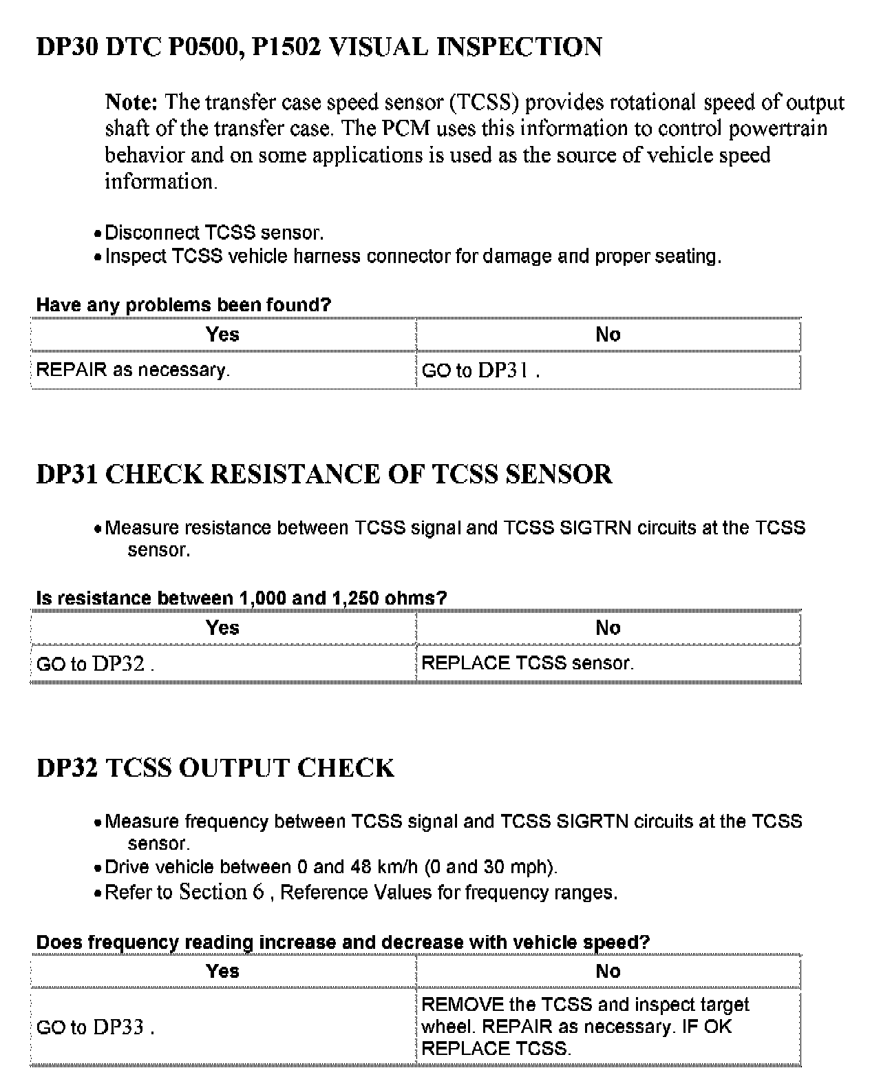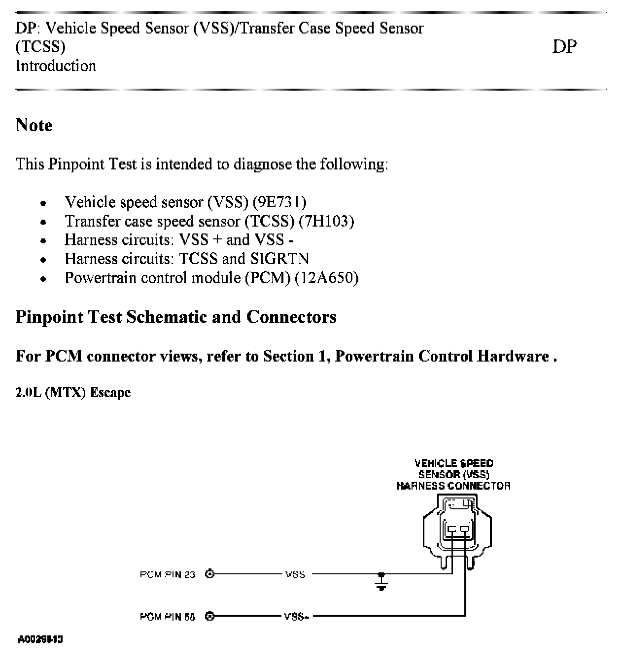 Tests DP: Vehicle Speed Sensor/Transfer Case Speed Sensor