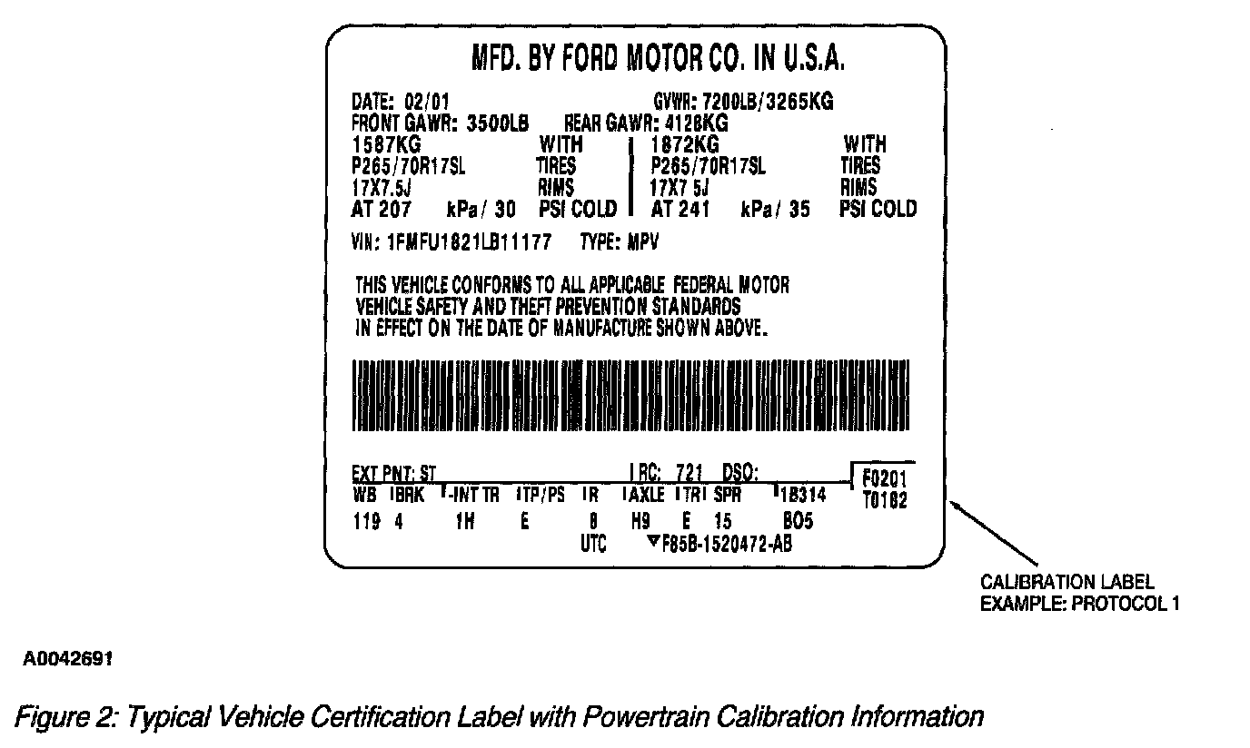 Typical Vehicle Certification Label With Powertrain Calibration Information: