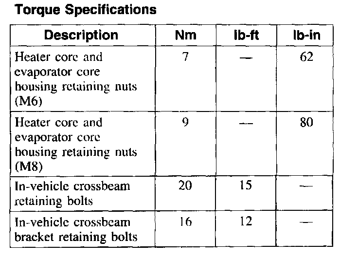 Torque Specifications:
