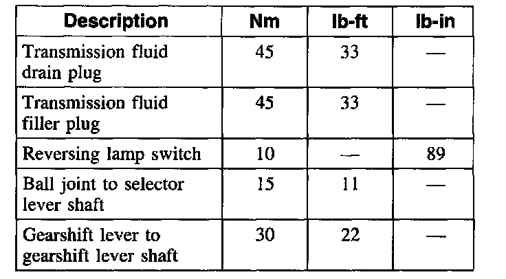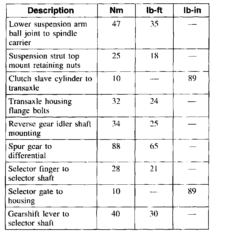 Torque Specifications