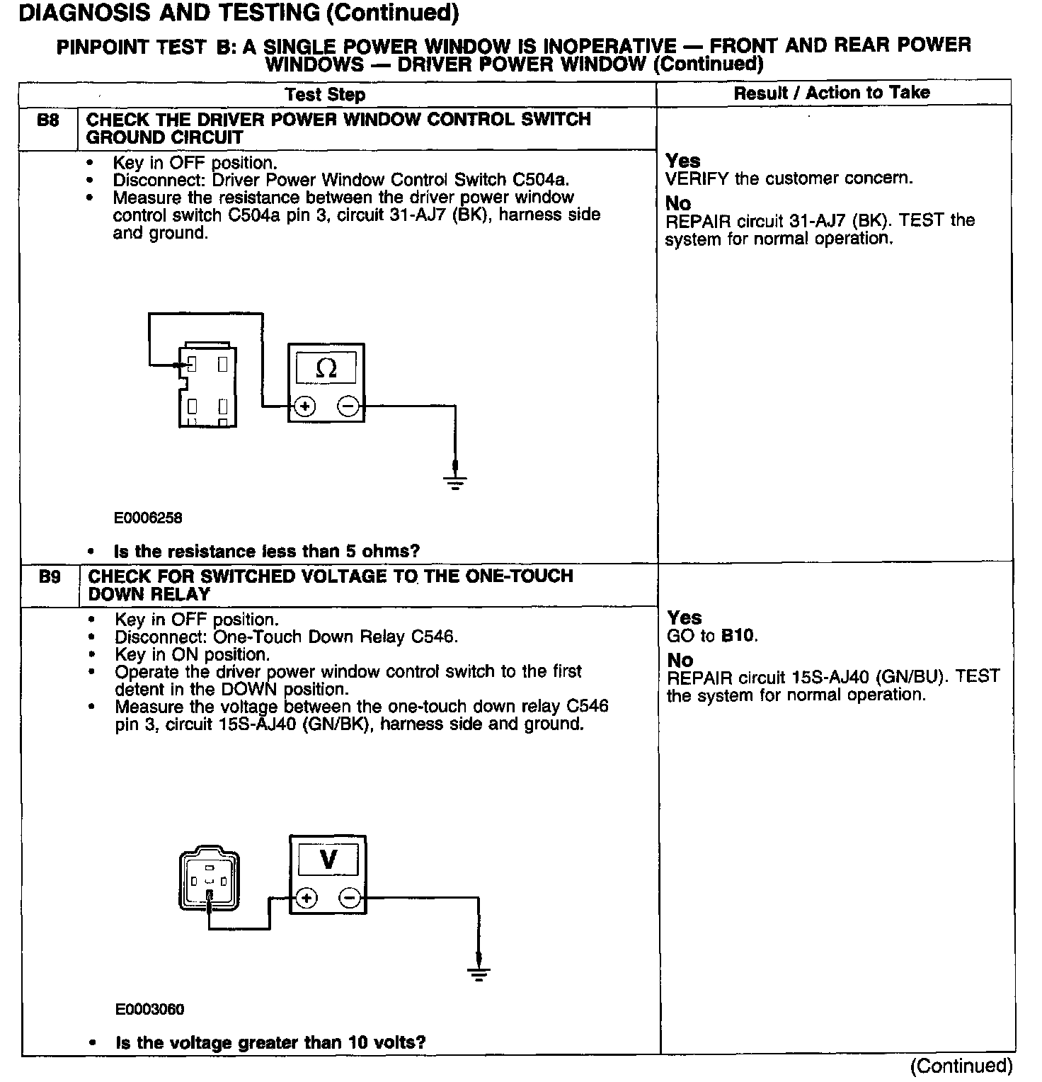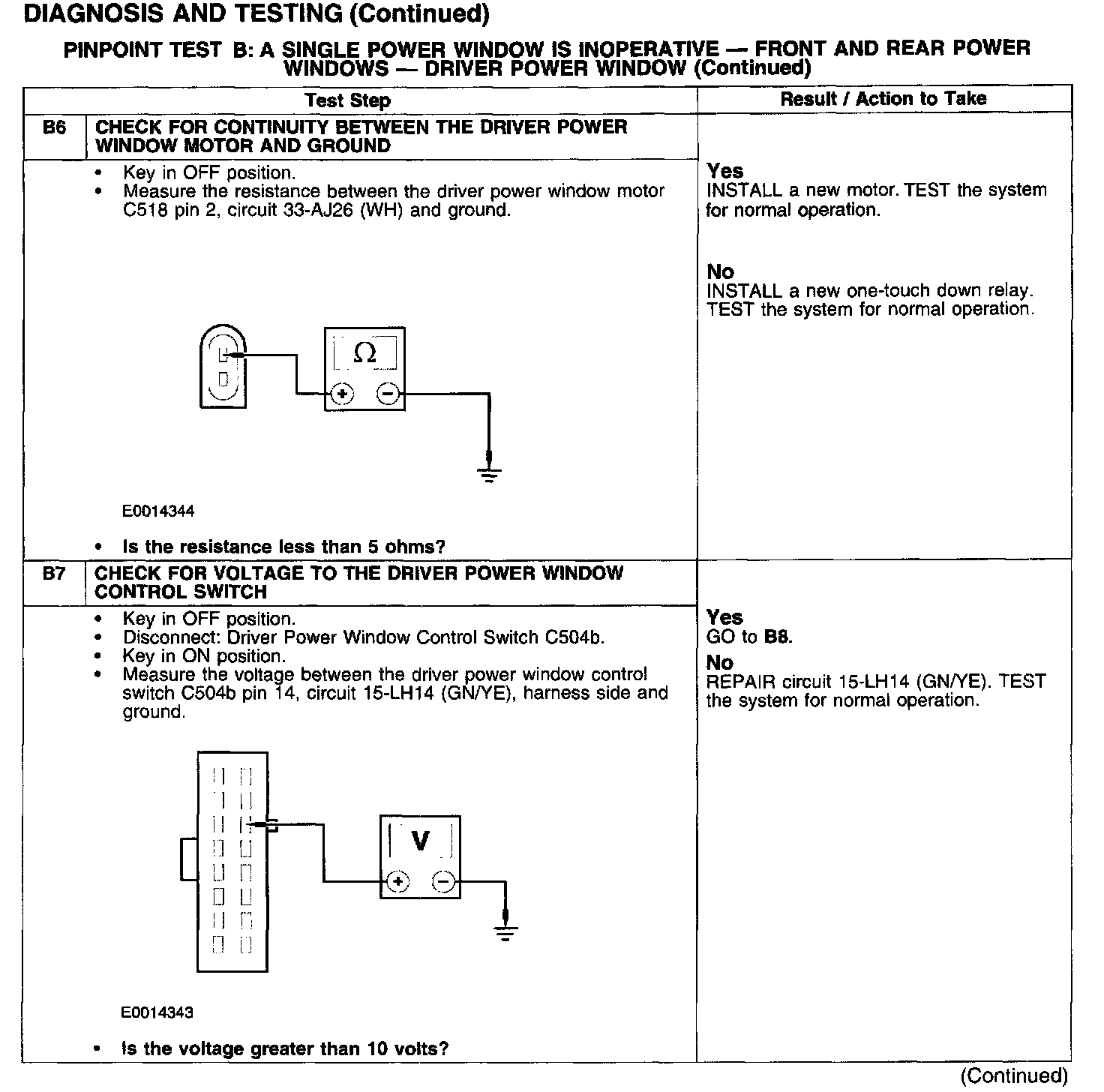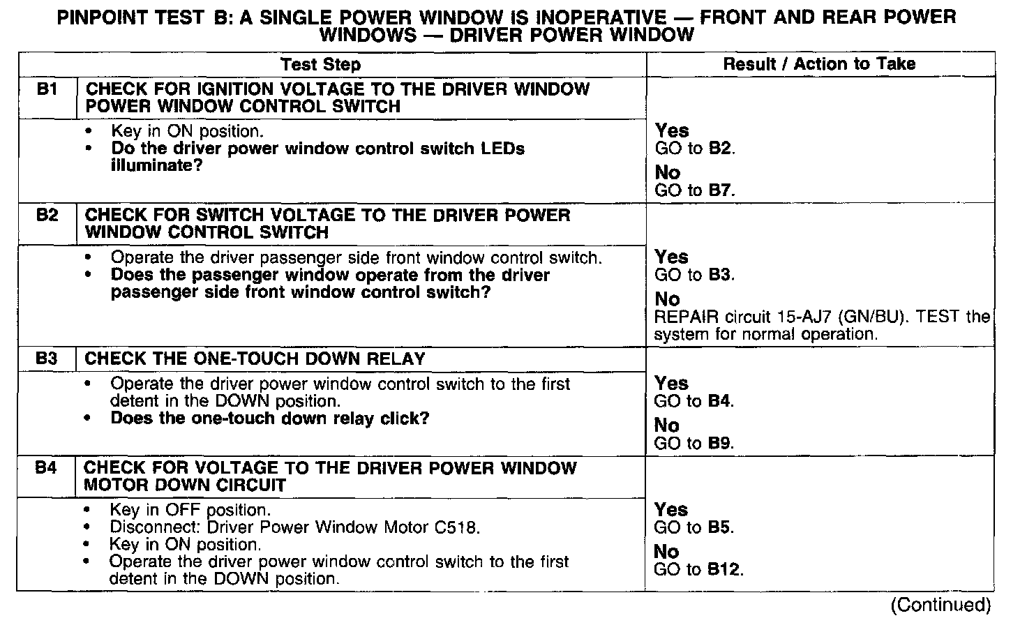 PINPOINT TEST B: A SINGLE POWER WINDOW IS INOPERATIVE - FRONT AND REAR POWER WINDOWS - DRIVER POWER WINDOW