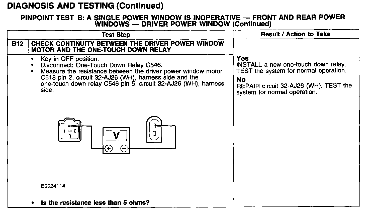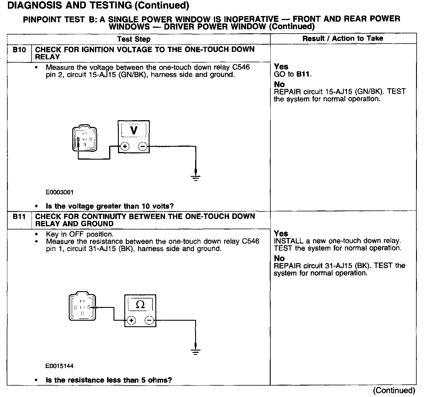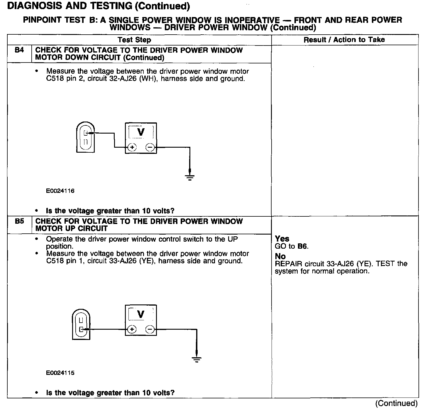 PINPOINT TEST B: A SINGLE POWER WINDOW IS INOPERATIVE - FRONT AND REAR POWER WINDOWS - DRIVER POWER WINDOW
