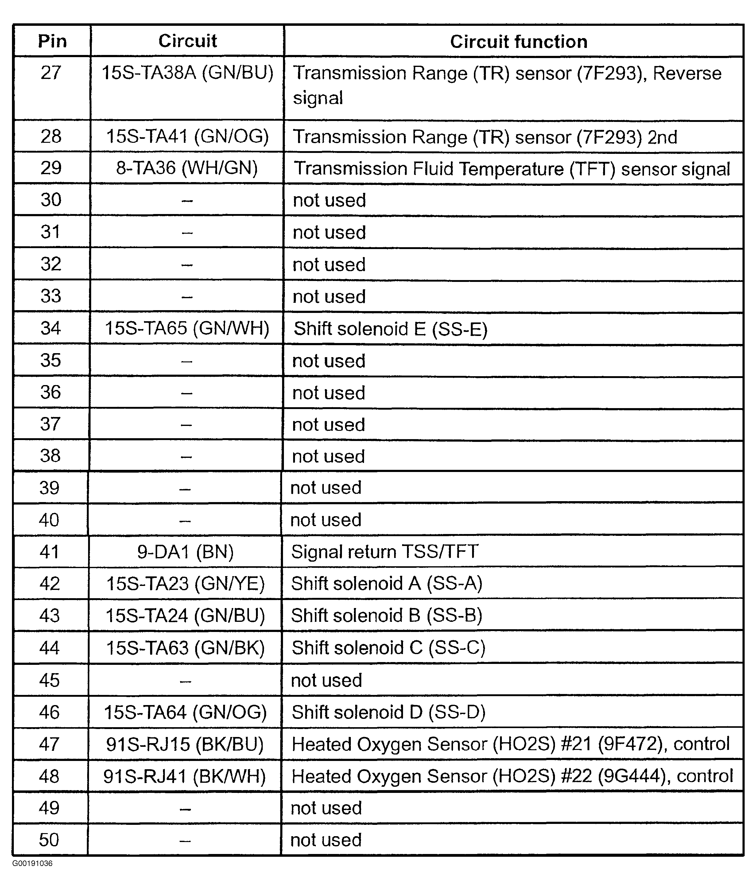 FOCUS 2.3L PCM CONNECTOR IDENTIFICATION